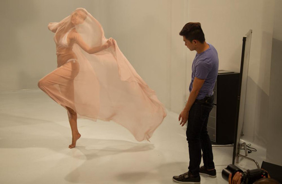 Những hình ảnh được ghi tại hậu trường buổi chụp hình với lụa sẽ cho thấy một giám khảo tận tụy với các thí sinh. Nhiều lúc, vì chưa ưng ý với tạo dáng của thí sinh, Nam Trung còn ra tận nơi để "uốn" dáng cho các thí sinh, thậm chí còn tạo dáng làm mẫu luôn cho các thí sinh.