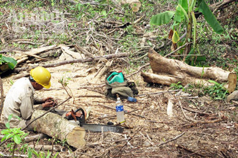 Nhiều hecta rừng bị đốn hạ ở các tiểu khu 83, 90 thuộc xã Phú Mỡ, huyện Đồng Xuân