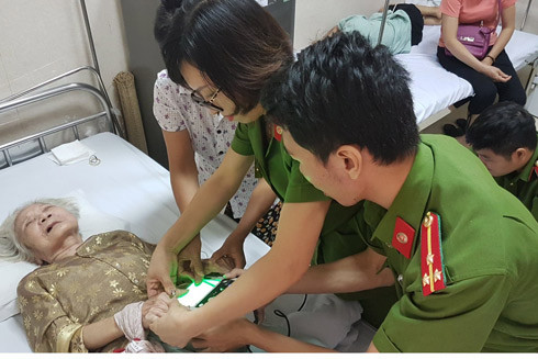 Khi ông Hoàng vừa đề xuất CAQ Bắc Từ Liêm đến tận nhà cấp CCCD cho mẹ thì không may bà cụ bị tụ huyết não phải đưa vào bệnh viện cấp cứu. Thiếu tá Nguyễn Thanh Huyền - Đội phó Đội Cảnh sát QLHC về TTXH nhớ lại: “Khi liên hệ với gia đình, biết được hoàn cảnh đặc biệt của cụ bà, chúng tôi đã quyết định triển khai ngay tổ công tác đến tận bệnh viện để cấp CCCD cho cụ”.