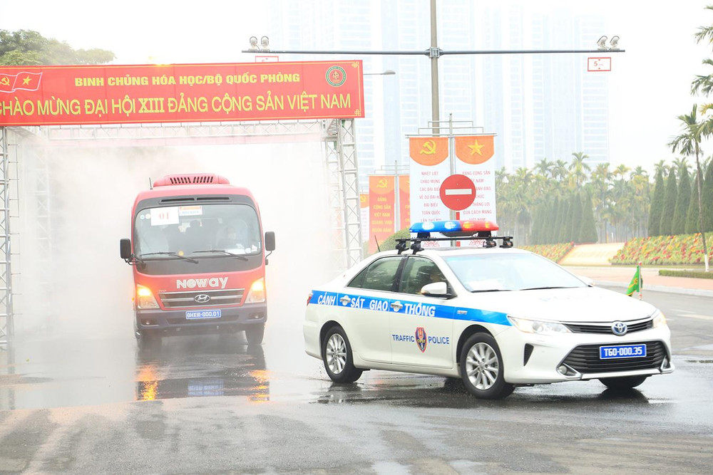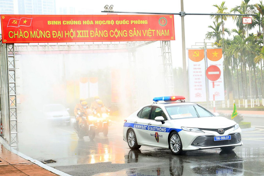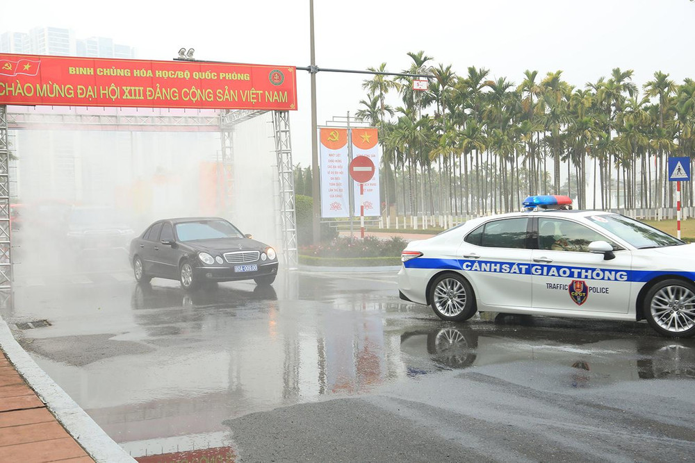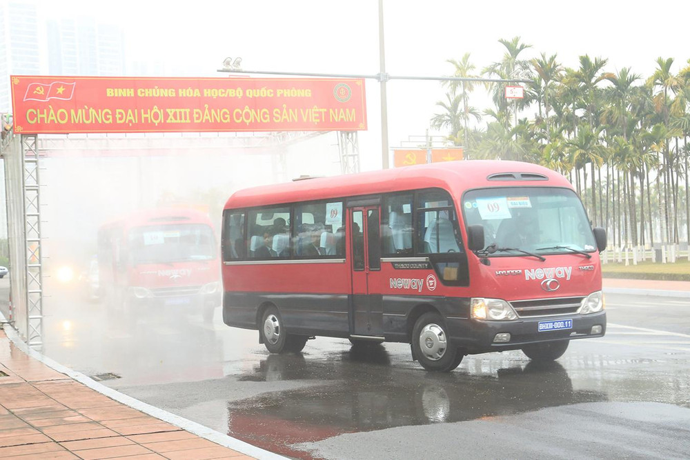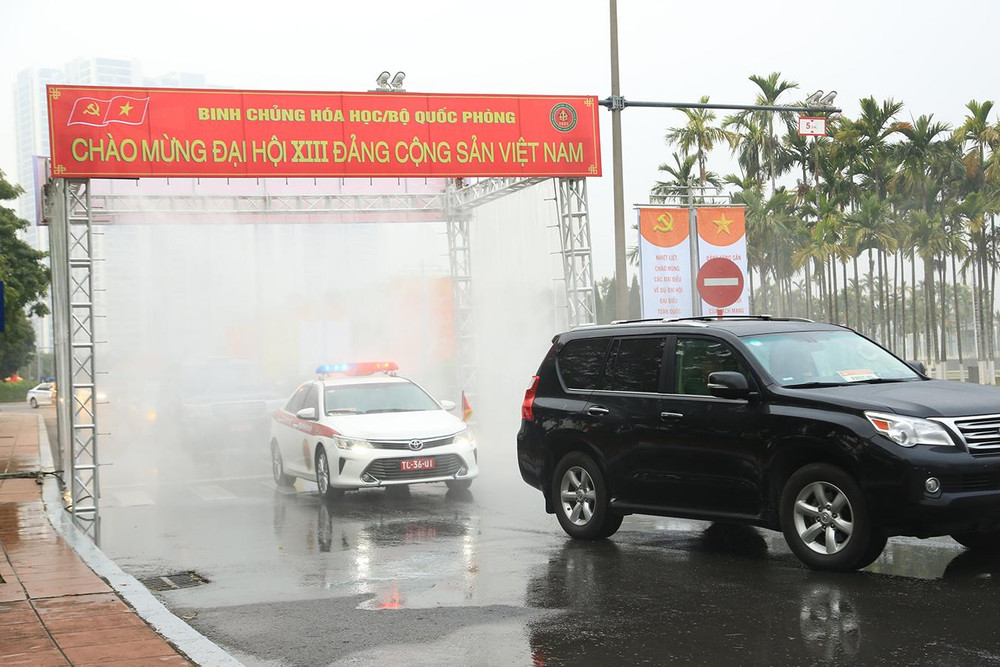 ANTD.VN -Toàn bộ phương tiện khi vào Trung tâm Hội nghị Quốc gia nơi diễn ra Đại hội đại biểu toàn quốc lần thứ XIII của Đảng được phun khử khuẩn bằng hóa chất nhằm đảm bảo các yêu cầu về kiểm soát dịch Covid-19.