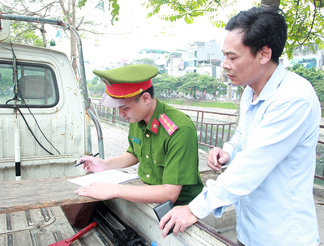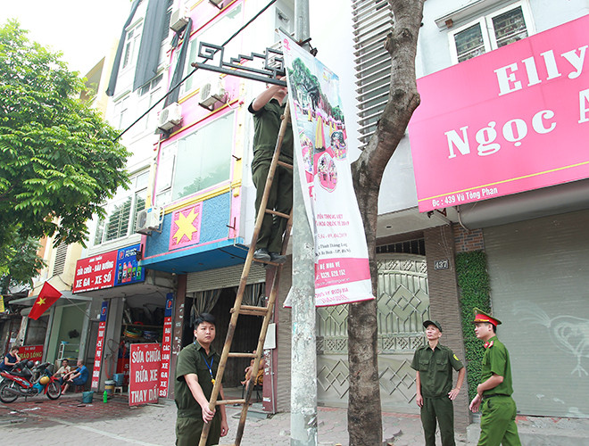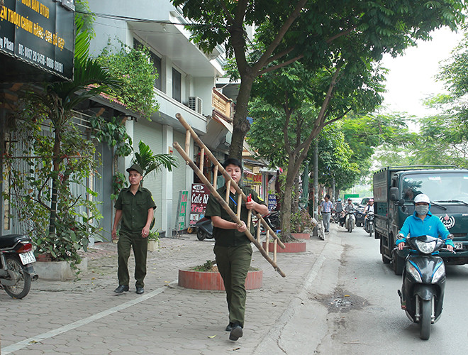 ANTD.VN -Tổ công tác CAP Khương Đình (Thanh Xuân, Hà Nội) liên tục tuần tra, nhắc nhở các trường hợp vi phạm, đặc biệt là các quán cafe, quán ăn dọc trên tuyến đường Vũ Tông Phan, Bùi Xương Trạch… để xe đúng quy định theo vạch sơn đã kẻ đồng thời yêu cầu các hộ kinh doanh tháo dỡ các biển hiệu, băng rôn quảng cáo gây mất mỹ quan đô thị.