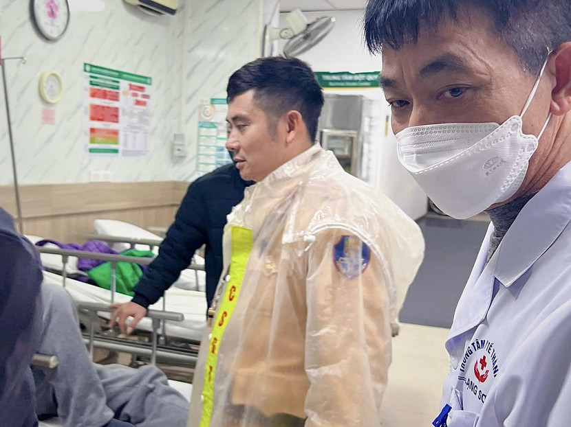 Đại úy Phạm Thanh Lâm trực tiếp hỗ trợ gia đình đưa bệnh nhân vào bệnh viện cấp cứu.