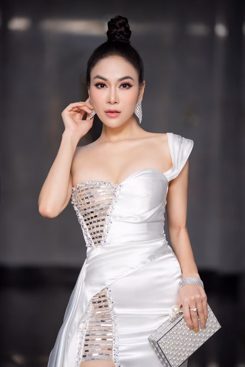 | Tại sự kiện, cô diện chiếc váy trắng dài thướt tha khoe được vóc dáng đồng hồ cát. |