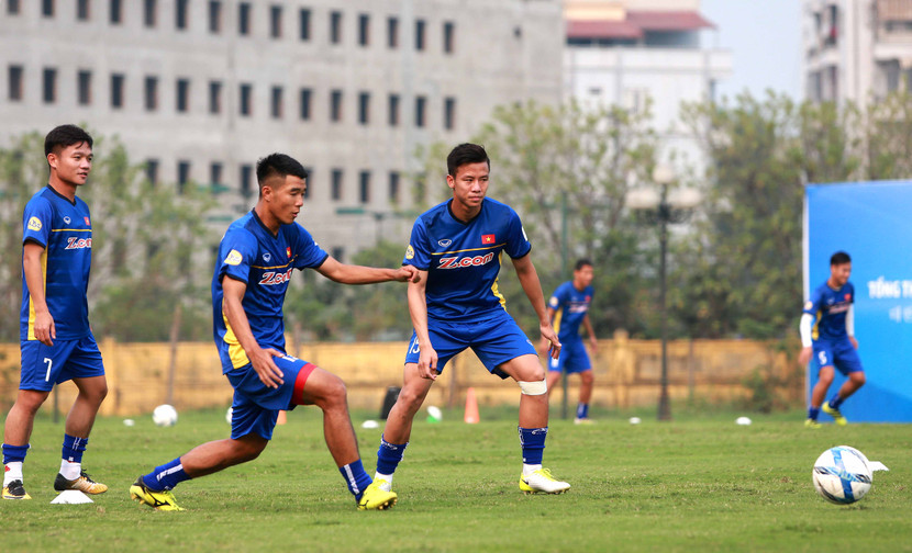 Để chuẩn bị cho trận đấu này, 21/23 tuyển thủ đã có buổi tập nhẹ tại Hà Nội vào chiều 23-3. Hai tuyển thủ Quang Hải và thủ môn Tiến Dũng xin phép hội quân muộn vào tối cùng ngày.