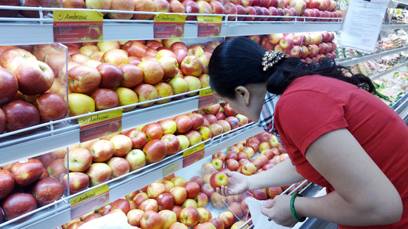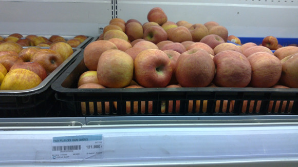 Tương tự, ngày 27-8, Thanh tra Sở NN&PTNT Hà Nội kiểm tra việc sản xuất, kinh doanh rau, quả tại siêu thị Oceanmart trên đường Phạm Ngọc Thạch phát hiện, lô táo được siêu thị ghi “táo Fuji, xuất xứ Hàn Quốc” có hóa đơn thương mại từ ngày 17-2-2014, tờ khai hải quan của lô hàng cấp ngày 5-3-2014. Như vậy, đến thời điểm kiểm tra, lô táo “Fuji Hàn Quốc“ bán tại siêu thị này đã có thời hạn 6 tháng. Tuy vậy, nhìn bề ngoài, trái táo vẫn tươi, ngon, chỉ hơi xỉn màu. Đại diện siêu thị Oceanmart khẳng định, lô táo không phải đã được nhập khẩu lâu như vậy, nhưng qua 1 tháng, phía siêu thị vẫn không cung cấp được giấy tờ liên quan chứng minh điều này.