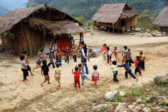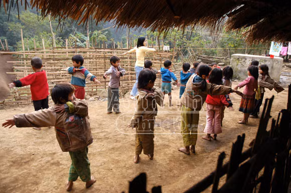 Cô giáo và những học trò thân yêu trong giờ thể dục tại sân trường Nậm Ban, Lại Châu