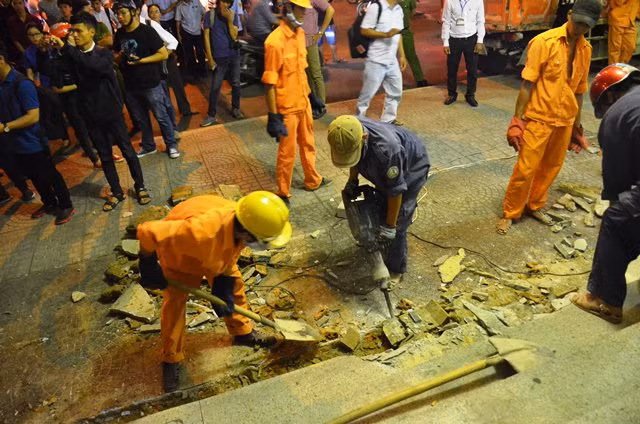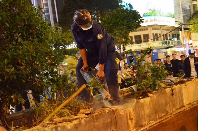 Tượng tự, gần đó tại quán cà phê hiệu Star Bucks có 3 bồn hoa lấn vỉa hè nên đoàn liên ngành cho lực lượng đập bỏ. Tiếp đó, đoàn đi trên đường Trần Hưng Đạo, phường Phạm Ngũ Lão phát hiện bậc thềm của nhà hát kịch thành phố lấn vỉa hè cũng bị lực lượng đập bỏ.