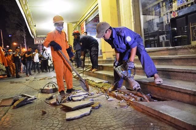 Bậc thềm của khách sạn New World lấn chiếm vỉa hè bị phá bỏ