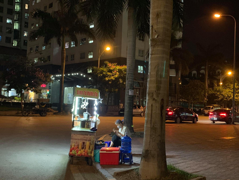| Vỉa hè khu vực Khu đô thị Nam Cường, phường Cổ Nhuế 1, một quán trà đá vô tư mở hàng đón khách |