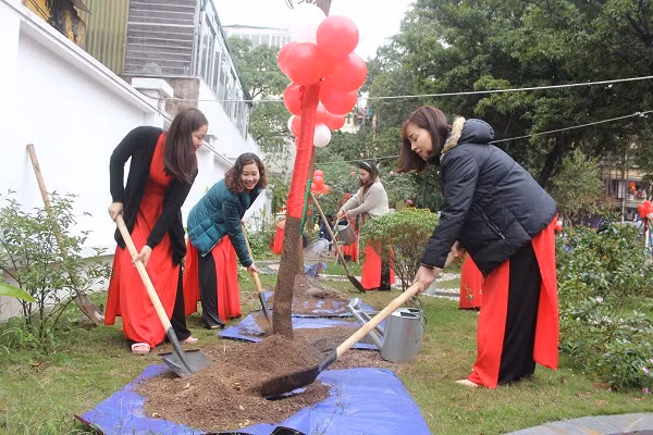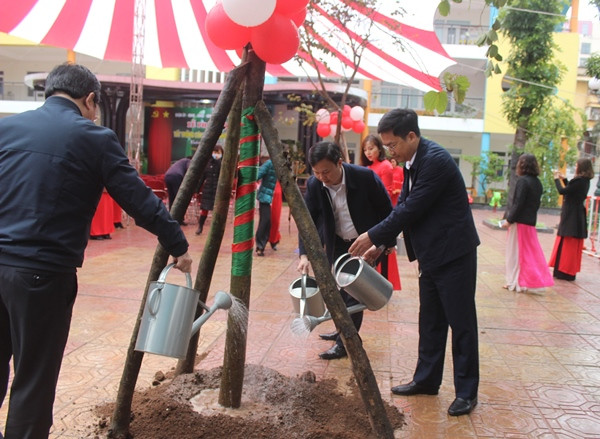 Lãnh đạo quận Đống Đa trồng cây xanh tại Trường Mầm non Trung Tự