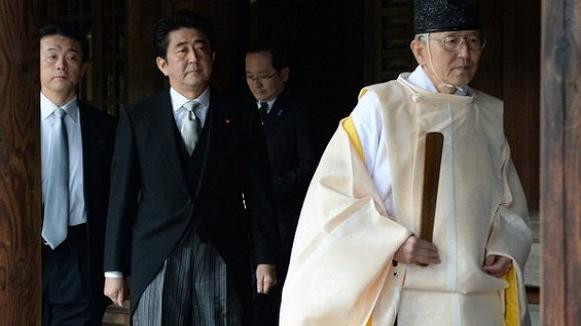 Chuyến thăm ngôi đền thờ tội phạm chiến tranh Yasukuni hôm 26-12 của ông Abe đã dẫn đến sự phản đối kịch liệt của các nước láng giềng và cộng đồng quốc tế, trong đó có Mỹ, với việc Đại sứ quán Mỹ tại Tokyo cho biết trong một tuyên bố rằng Washington "thất vọng" về chuyến thăm đền Yasukuni của Thủ tướng Abe.