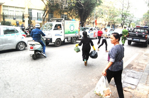 Xe thu gom rác của phường, quận cũng tham gia thu gom rác trên các tuyến phố, giúp cho việc vệ sinh môi trường được sạch sẽ ở những tuyến đường này