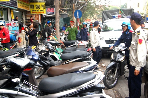 Nằm trong kế hoạch đảm bảo trật tự đô thị, sáng nay 28-2, CAQ Hoàn Kiếm tiếp tục phối hợp với TTGT quận Hoàn Kiếm tổng kiểm tra xử lý các hành vi vi phạm lấn chiếm lòng đường, vỉa hè trên các tuyến phố cổ, phố cũ. Điểm đầu tiên các lực lượng chức năng kiểm tra là tuyến phố Triệu Quốc Đạt, Phủ Doãn, gần cổng các bệnh viện lớn như Việt Đức, Nhi Trung ương...