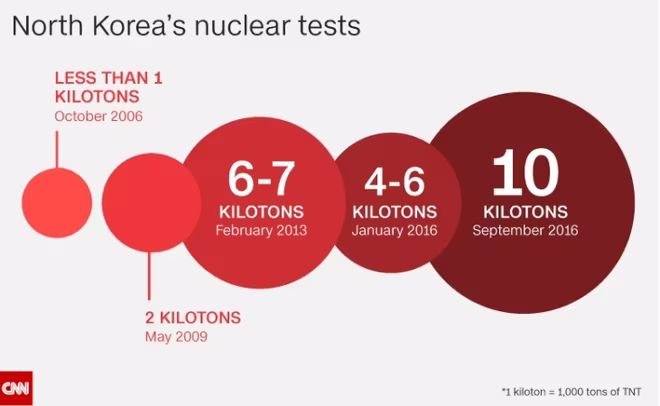 Cho tới nay, Triều Tiên đã thử hạt nhân tổng cộng 5 lần, trong đó 3 lần dưới thời lãnh đạo hiện thời Kim Jong-un. Kể từ khi lên nắm quyền, ông Kim Jong-un đã tăng cường mạnh mẽ chương trình phát triển hạt nhân của họ.