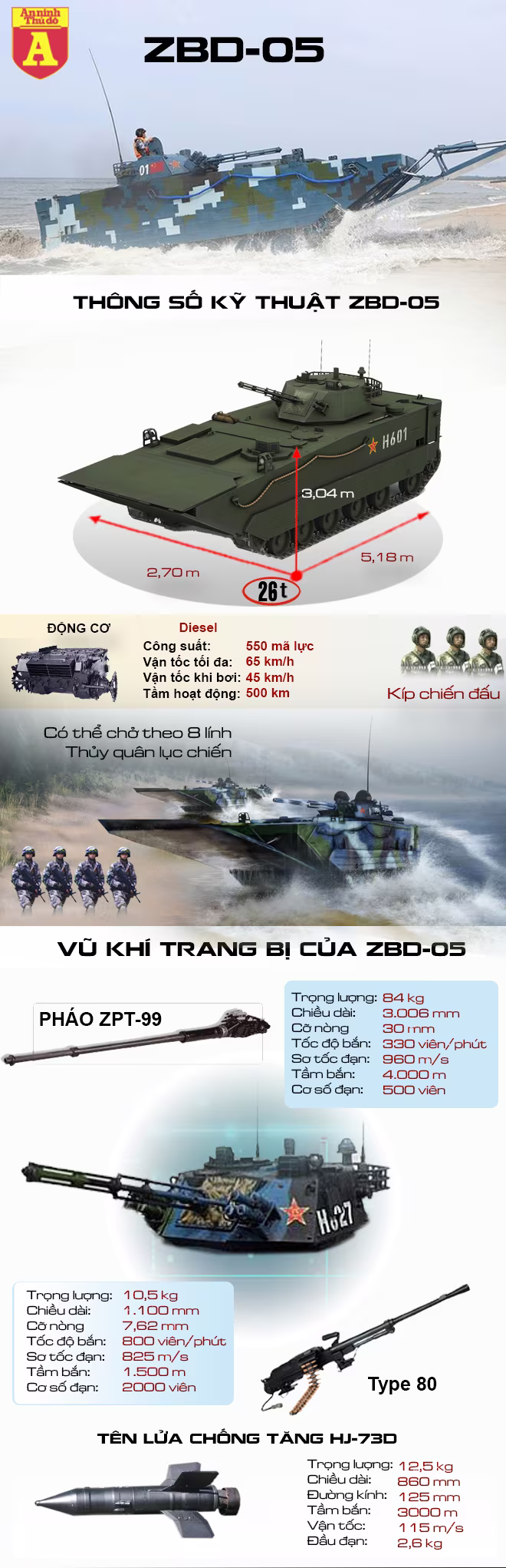 Ra đời từ năm 2006, được thiết kế, lắp ráp và sản xuất bởi Tập đoàn quốc phòng Norinco của Trung Quốc, xe thiết giáp lội nước Type 05 hay ZBD-05 hiện giờ đang là loại phương tiện chiến đấu lội nước quan trọng của Hải quân Đánh bộ Trung Quốc.
