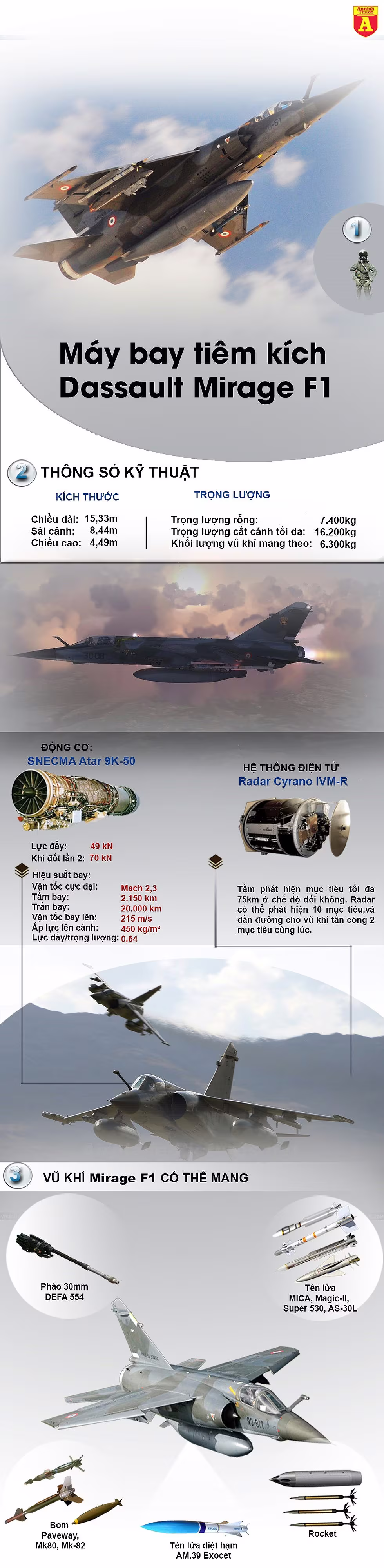 Dassault Mirage F1 một máy bay tấn công và tiêm kích ưu thế trên không một chỗ ngồi được chế tạo bởi hãng Dassault Aviation của Pháp. Mirage F-1 được đưa vào trang bị cho Không quân Pháp từ năm 1973. Nó đã trở thành xương sống của không quân Pháp trước khi Mirage 2000 thế chỗ chúng. Hiện nay Pháp đã loại biên hoàn toàn số tiêm kích trên và chuyển giao cho Mỹ để đóng giả máy bay đối phương trong không chiến. Hiện nay loại máy bay này vẫn đang hoạt động hạn chế trong không quân một số quốc gia trên thế giới trong đó có Lybia.