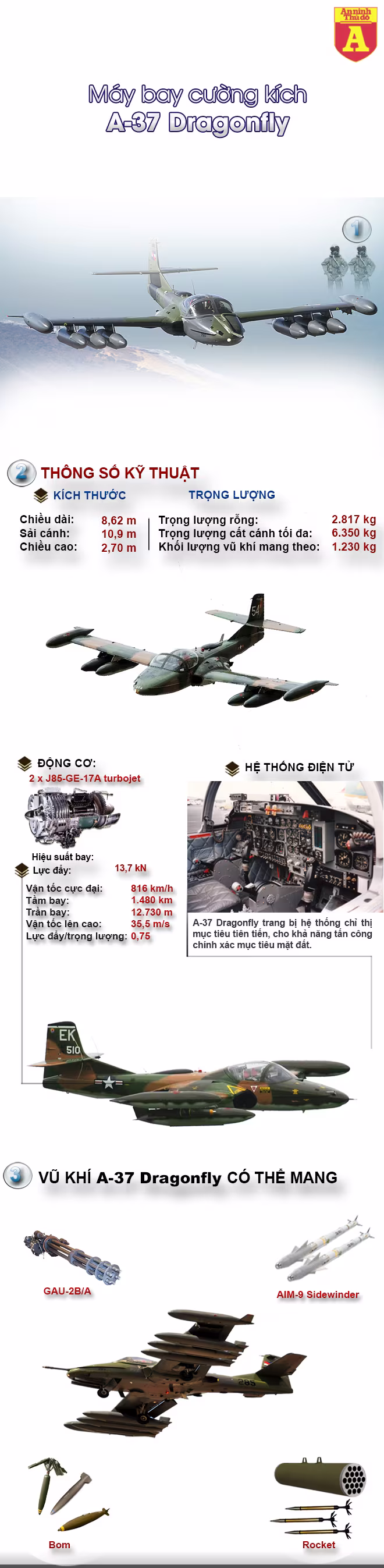 Cường kích A-37 Dragonfly là loại máy bay ném bom hạng nhẹ, được quân đội Mỹ đặt hàng hãng Sessna phát triển từ loại máy bay huấn luyện 2 chỗ ngồi T-37Cs, với mục đích tạo ra một loại máy bay ném bom có chi phí hoạt động thấp. Tuy được phát triển từ máy bay huấn luyện, nhưng nó lại được trang bị hệ thống điện tử tốt hơn cùng hai động cơ khỏe giúp chúng có thể cơ động cao trên chiến trường.