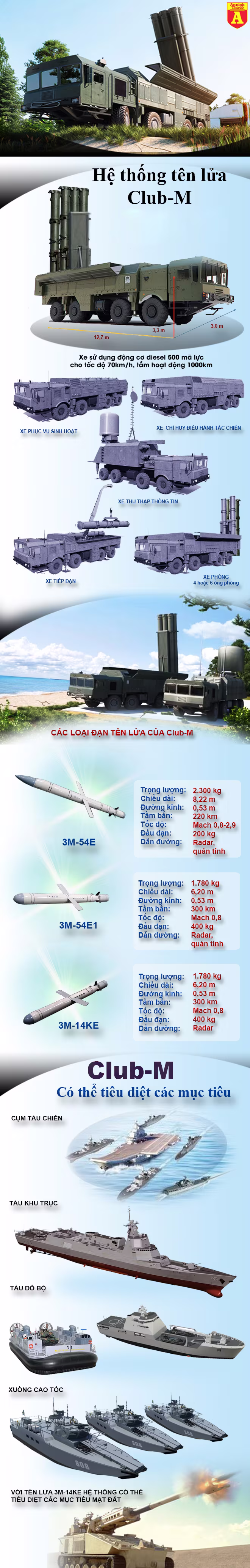 Club-M của Nga được coi là hệ thống tên lửa phòng thủ bờ biển đáng sợ nhất hiện nay trên thế giới, được mệnh danh là "sát thủ canh biển" trước đối phương.