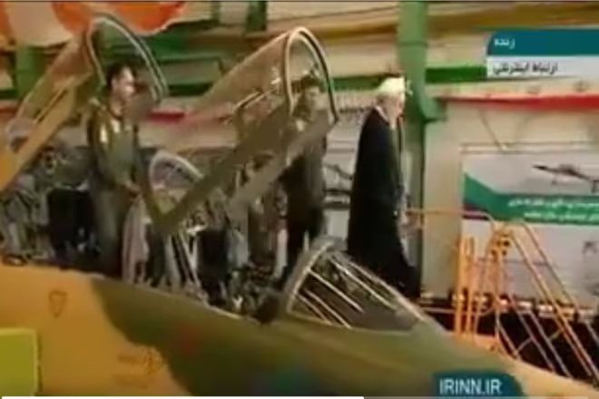 Hình ảnh trên truyền hình nhà nước Iran cho thấy Tổng thống Hassan Rouhani ngồi trong buồng lái của máy bay “Kowsar” mới tại triển lãm Công nghiệp Quốc phòng đang diễn ra tại Tehran.