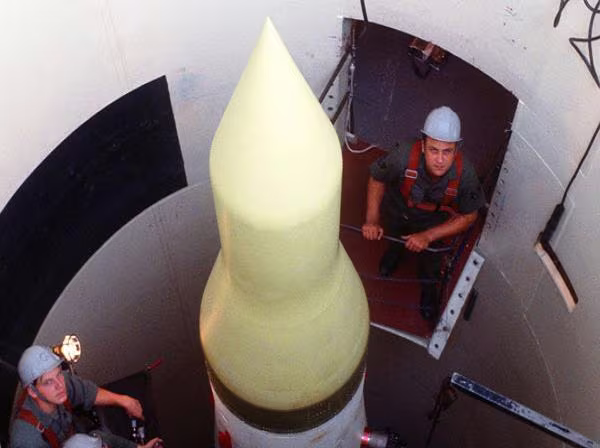 Một tên lửa đạn đạo liên lục địa Minuteman III dưới hầm chứa