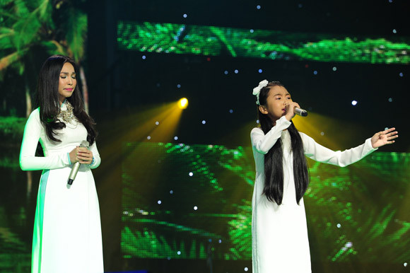 Quang Anh và mẹ trên sân khấu Giọng hát Việt nhí đêm chung kết