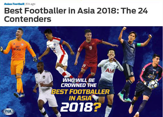 Có 24 ứng viên tranh danh hiệu Cầu thủ xuất sắc nhất châu Á 2018 do FOX Sports Asia và Titan Sports tổ chức