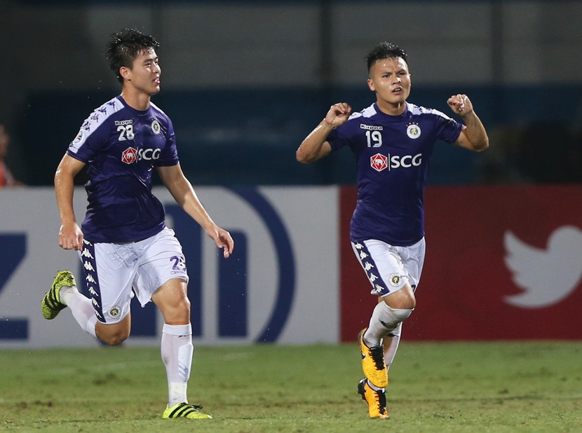 Quang Hải (phải) tỏa sáng rực rỡ với cú đúp bàn thắng