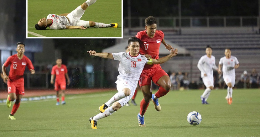 Phút 18 trận U22 Việt Nam gặp U22 Singapore tối 3-12, sau pha tranh chấp bóng cùng đội trưởng đối phương là Irfan Fandi, Quang Hải đã nằm sân đau đớn. Ngay lập tức, anh được HLV Park Hang-seo cho ra nghỉ (Hùng Dũng vào thay).