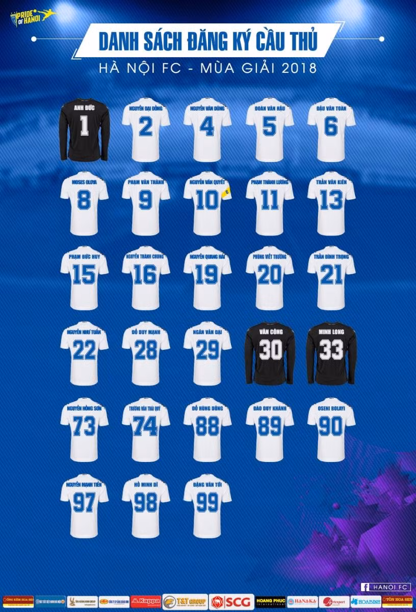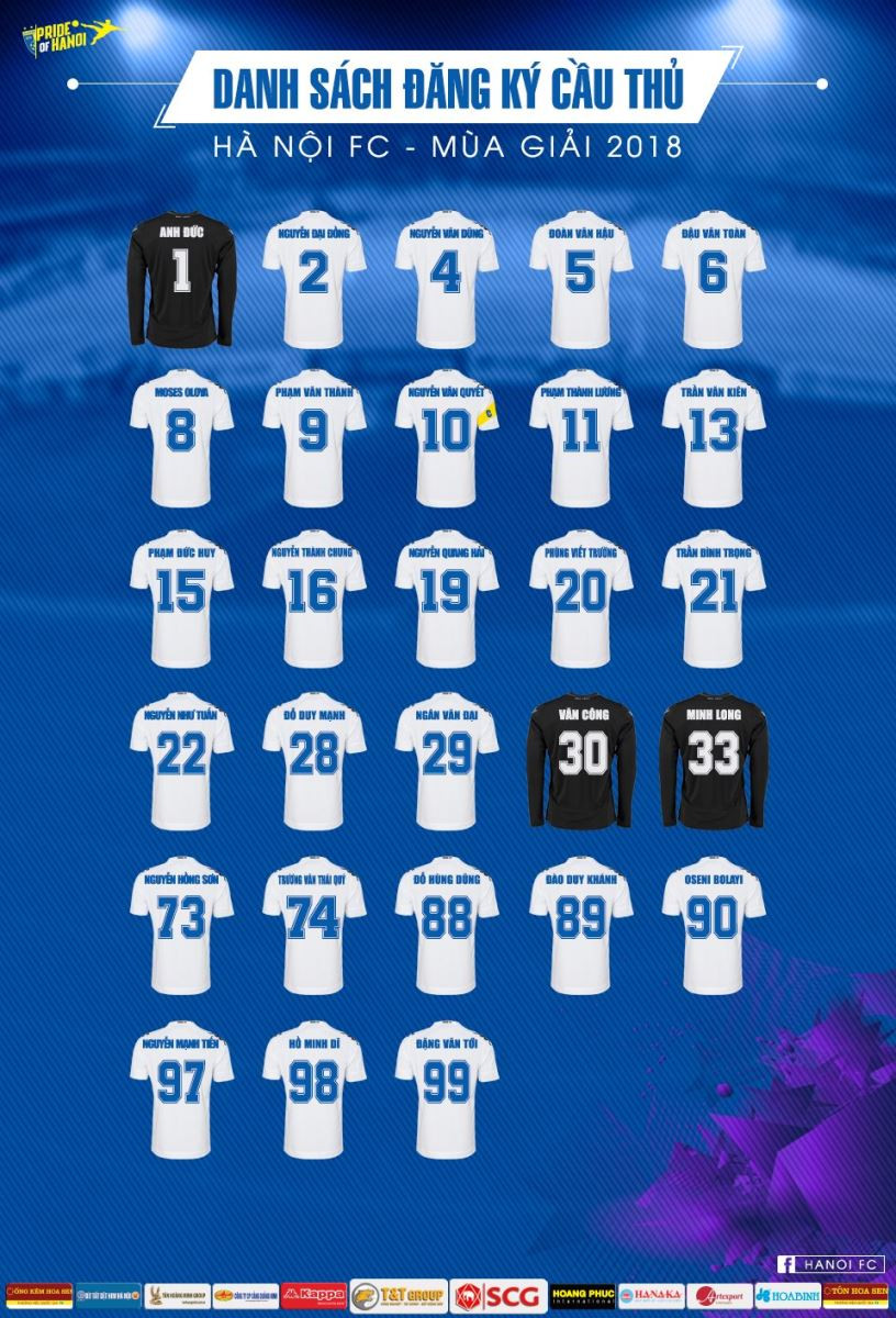 Danh sách đăng ký cầu thủ của Hà Nội FC ở V-League 2018