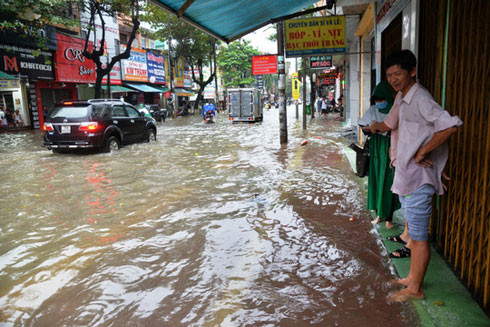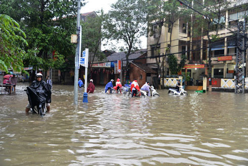 Nhiều tuyến đường trung tâm thành phố Quảng Ngãi bị ngập nặng do mưa lớn trong những ngày qua.