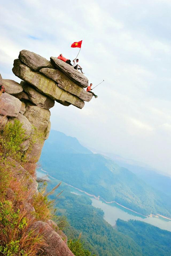Hình ảnh nguy hiểm của một nhóm bạn trẻ chụp tại mỏm Đá Chồng