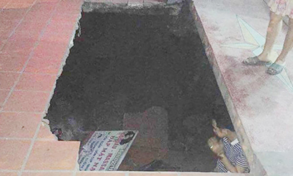Trước đó, vào sáng 5-4, tại địa chỉ trên đã xuất hiện một "hố tử thần" rộng hơn 10m2, sâu 2m, sụt lún khiến 1 nam thanh niên và 2 xe máy bị rơi xuống.
