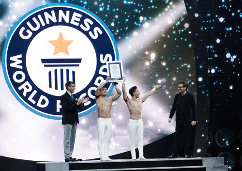 Theo yêu cầu của Tổ chức kỷ lục Guinness Thế giới, anh em nghệ sĩ xiếc Việt Nam có 1 phút để biểu diễn. Hai anh em đã xác lập trong 53,97 giây. Lần này, ngoài phần trình diễn của hai anh em nhà họ Giang còn có gần 30 tiết mục của nhiều nghệ sĩ đến từ các nước tham gia xác lập Guinness.