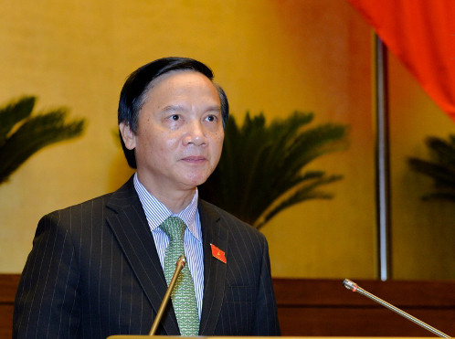 Chủ nhiệm Ủy ban Pháp luật của Quốc hội Nguyễn Khắc Định trình bày báo cáo