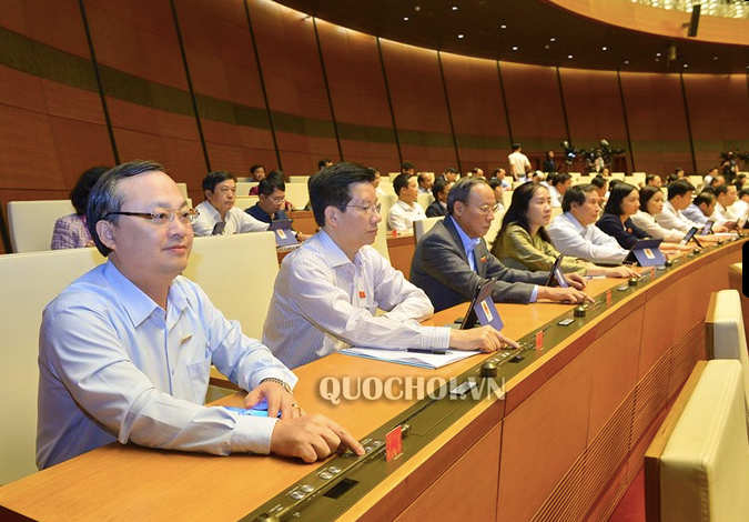 Các đại biểu bấm nút biểu quyết thông qua luật