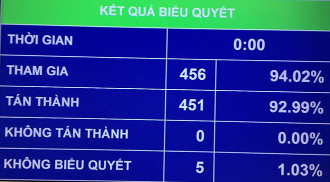 Kết quả biểu quyết thông qua Luật Đặc xá (sửa đổi)