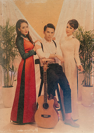 Trong bộ hình đậm màu hoài cổ, Quốc Thiên hóa quý ông lịch lãm khi quấn quýt bên 2 mỹ nhân xinh đẹp, dịu dàng. Quốc Thiên tiết lộ, bộ hình được thực hiện đúng trên tinh thần, cảm xúc mà dự án “Tuyệt phẩm song ca” hướng tới và cả Phương Linh, Uyên Linh đều rất thoải mái khi chụp những bức hình tình tứ cùng anh.