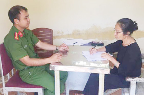 Lấy lời khai đối tượng Cao Thị Tâm tại cơ quan công an