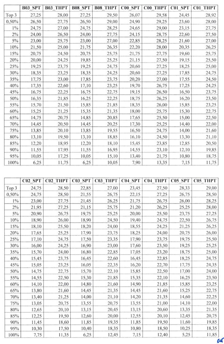 Tổ hợp B00 có mức chênh lệch hơn 6 điểm ở quảng 17,10 điểm thi SPT tương đương 23,25 điểm thi tốt nghiệp THPT (lệch 6,15 điểm)