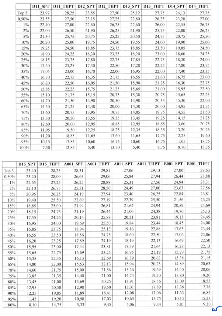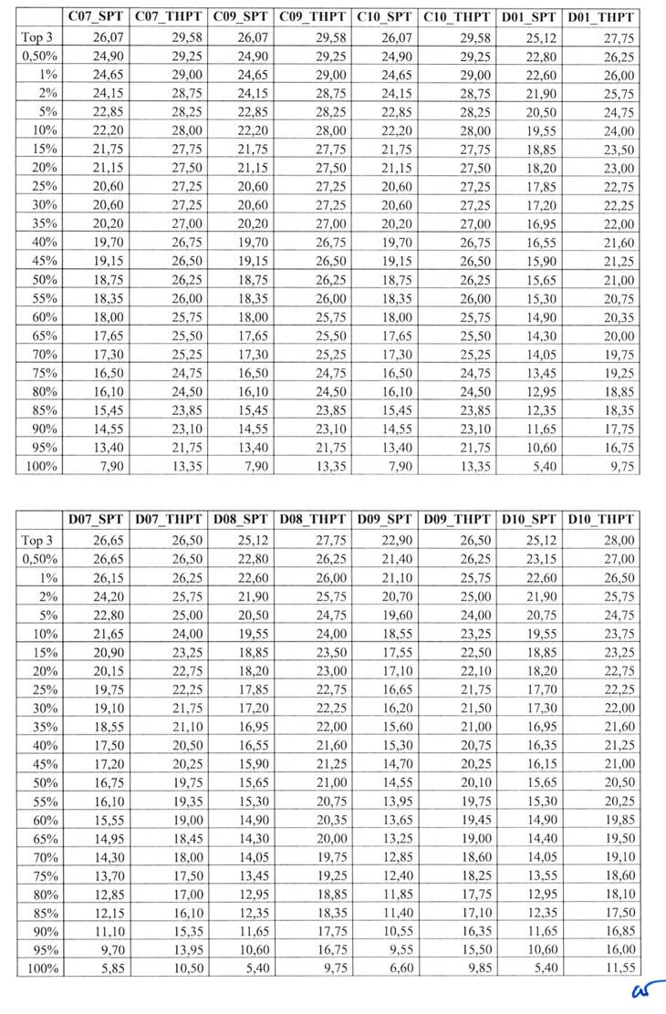 Ở tổ hợp D01 (toán, văn, tiếng Anh), 25,12 điểm thi SPT tương đương 27,75 điểm thi tốt nghiệp THPT; 18,20 điểm thi SPT tương đương 23 điểm thi tốt nghiệp THPT (độ lệch gần 5 điểm).