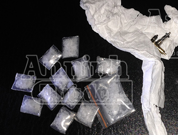 Quá trình kiểm tra hành chính, tổ công tác phát hiện có một gói ni lông giấu trong quần sịp của đối tượng, bên trong có 12 gói nhỏ chứa các tinh thể màu trắng nghi là ma túy đá.