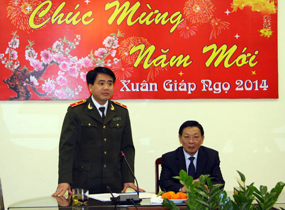 Tiếp thu ý kiến chỉ đạo của đồng chí Chủ tịch UBND TP Nguyễn Thế Thảo tại buổi thăm và chúc Tết, Thiếu tướng Nguyễn Đức Chung - Giám đốc CATP Hà Nội phát biểu: Nhân dịp chuẩn bị đón Xuân Giáp Ngọ 2014, lực lượng CATP nói chung và lực lượng CSHS nói riêng, rất vinh dự được đón đồng chí Chủ tịch UBND TP đến thăm, động viên và chúc Tết CBCS Phòng CSHS. Đảng ủy - Ban Giám đốc CATP và các cán bộ chiến sỹ Phòng CSHS luôn nhận thức sâu sắc rằng, trong những năm vừa qua, đặc biệt năm 2013, được sự quan tâm chỉ sát sao của lãnh đạo Thành ủy - UBND TP Hà Nội, trực tiếp là đồng chí Chủ tịch UBND TP phụ trách khối Đảng ủy CATP luôn dành thời gian quan tâm về mọi mặt để lãnh đạo chỉ đạo lực lượng Công an Thủ đô nói chung và lực lượng CSHS nói riêng. Chúng tôi sẽ quán triệt tất cả CBCS Công an Thủ đô thực hiện một cách nghiêm túc và xin hứa toàn thể CBCS công an Thủ đô nỗ lực cố gắng thực hiện tốt đợt cao điểm tấn công trấn áp tội phạm, tuyệt đối an toàn để nhân dân Thủ đô vui xuân đón Tết bình an.
