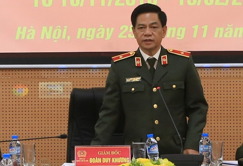 Thiếu tướng Đoàn Duy Khương phát biểu chỉ đạo tại hội nghị phát động cao điểm tấn công trấn áp tội phạm, bảo vệ Tết Nguyên đán Đinh Dậu và sơ kết công tác Công an tháng 11 - 2016 của Công an Hà Nội