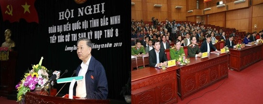 Thay mặt đoàn đại biểu Quốc hội tỉnh Bắc Ninh, Bộ trưởng Tô Lâm đã thông báo nhanh kết quả kỳ họp thứ 8, Quốc hội khoá XIV. Bộ trưởng cũng đã tập trung phân tích kết quả thực hiện kinh tế, xã hội của đất nước trong năm 2019 và kế hoạch năm 2020.