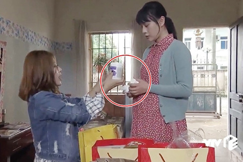 Lát sau, lỗi vẫn là về hộp sữa. Trong phân cảnh chị Lan (Thanh Hương) mua hẳn 3 loại để bồi bổ cho Quỳnh trước khi về quê ăn Tết. "Bà chị chu đáo" còn căn dặn: "Đây là sữa dành cho bà bầu, ngày phải uống ít nhất 2 cốc thì mới tốt cho sức khỏe, sau này mới đủ sữa cho con bú". Thế nhưng, sự thật đây là hộp bột tăng cân và chiều cao dành cho… bé từ 1 tháng tuổi. Ngoài ra, hai hộp kẽm và DHA cho trẻ nhỏ cũng bị chị Lan chuyển thành vitamin và sắt.