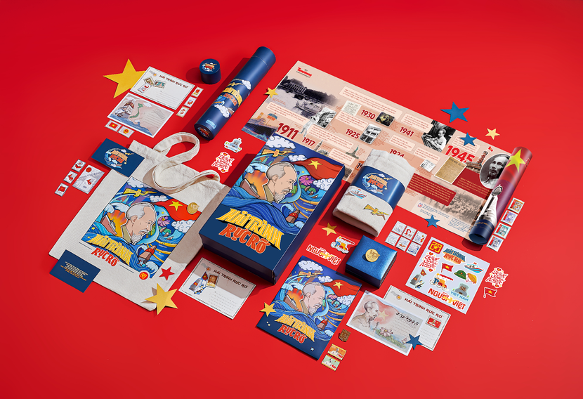 Cùng với Infographic, "Hải trình rực rỡ" được phát triển thành bộ ấn phẩm giới hạn gồm: túi đặc biệt có in hình ảnh chân dung Bác Hồ; bộ 5 postcard (bưu thiếp) gợi nhắc những địa danh lịch sử; bộ sưu tập tem “Mở lối” được tuyển chọn tinh túy từ kho lưu trữ quý giá của Công ty Tem Việt Nam, đưa mọi người đi qua những cột mốc 2/9 vàng son của đất nước từ thập niên 50 đến những năm đổi mới. Trong đó, mỗi bộ tem là một tác phẩm độc bản, lưu giữ những câu chuyện lịch sử và giá trị thẩm mỹ của từng thời kỳ. Vì tính chất duy nhất, không phát hành lại của các bộ tem nên đây là cơ hội hiếm có để sở hữu một "báu vật" văn hóa mang niềm tự hào dân tộc. Ngoài ra, bộ ấn phẩm còn mang đến một huy hiệu đặc biệt là hình biểu trưng cho kỷ niệm 80 năm Quốc Khánh 2/9. Bạn đọc may mắn sẽ nhận được huy hiệu mạ vàng, phiên bản hiếm có của dịp Dại lễ này.