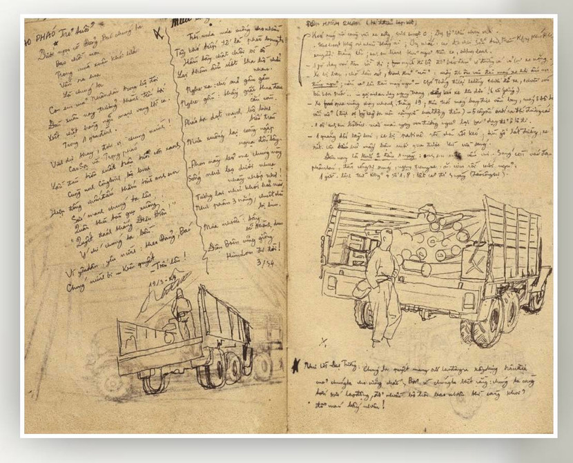 Ngoài nội dung nhật kí, phần hình ảnh của “Kí họa trong chiến hào” rất đặc sắc. Trong sách có hình ảnh 16 trang nhật kí gốc gồm các trang viết tay, trang vẽ bản đồ, hiện vật thời chiến…