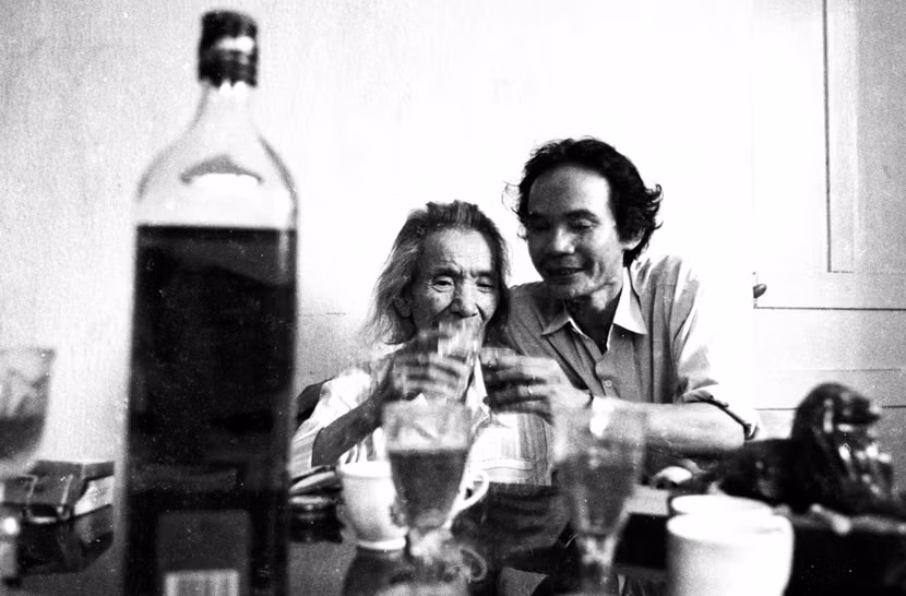 Nguyễn Trọng Tạo trong một lần đối ẩm cùng nhạc sĩ Văn Cao