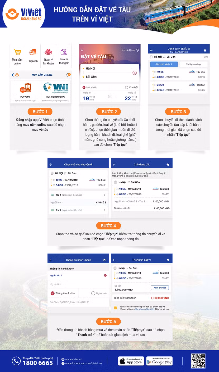 Cách đặt vé tàu trên Ví Việt