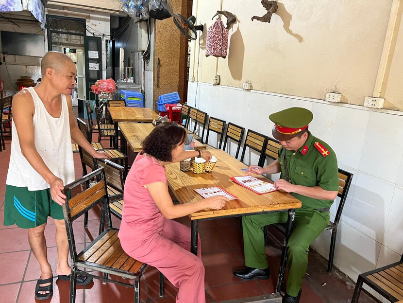 | Công an phường Trung Hòa tăng cường tuyên truyền đến các cơ sở kinh doanh nhà hàng, quán ăn |
